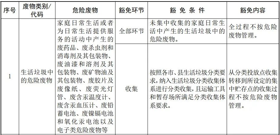 圖2 危險(xiǎn)廢物豁免管理清單(節(jié)選)