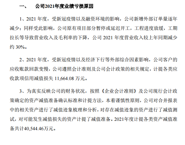 而這些,都可以看做是PPP暴雷后的次生危害,一直延續(xù)到了現(xiàn)在。這種影響,即使在企業(yè)完成混改后,也仍然需要很長(zhǎng)時(shí)間才能消化。比如,節(jié)能鐵漢就表示,長(zhǎng)達(dá)兩年多的經(jīng)營(yíng)困境,中節(jié)能集團(tuán)年初完成并購(gòu)后在管理方面做了大量的融合工作,公司在報(bào)告期內(nèi)仍處于修復(fù)狀態(tài),直接影響了公司經(jīng)營(yíng)。如果說(shuō)行業(yè)屬性是根本原因,PPP暴雷是最大變量,那么新冠疫情就是“黑天鵝”和“灰犀?!?,使得環(huán)保行業(yè)“屋漏偏逢連夜雨”,進(jìn)一步加劇了情況的嚴(yán)重程度。比如,博世科就表示,受經(jīng)濟(jì)下行、全球新冠疫情反復(fù)、環(huán)境治理行業(yè)市場(chǎng)競(jìng)爭(zhēng)加劇等因素影響,報(bào)告期內(nèi)公司國(guó)內(nèi)外業(yè)務(wù)均受到了不同程度的影響,獲取訂單及項(xiàng)目實(shí)施不及預(yù)期。博天環(huán)境也解釋說(shuō),2021年度,受新冠疫情以及融資環(huán)境的影響,公司新增外部訂單量逐年減少;同樣受此影響,公司原有項(xiàng)目部分暫?;蜓舆t開(kāi)工,工程進(jìn)度放緩,工期拉長(zhǎng)等導(dǎo)致?tīng)I(yíng)業(yè)收入及毛利率的下降,公司2020年年度營(yíng)業(yè)收入較上年同期減少約30%。還有,2021年度,受新冠疫情、經(jīng)濟(jì)下行等外部綜合因素影響,博天客戶的應(yīng)收賬款回款變慢,公司遵照會(huì)計(jì)準(zhǔn)則及公司會(huì)計(jì)政策的相關(guān)規(guī)定,還計(jì)提各類(lèi)應(yīng)收款項(xiàng)信用減值損失約21,900萬(wàn)元。總之,疫情對(duì)環(huán)保企業(yè)的影響是全方位的,既有新增訂單的影響,也有現(xiàn)有項(xiàng)目工程的影響,還有應(yīng)收賬款回款速度的影響,給環(huán)保企業(yè)造成了不小的麻煩。