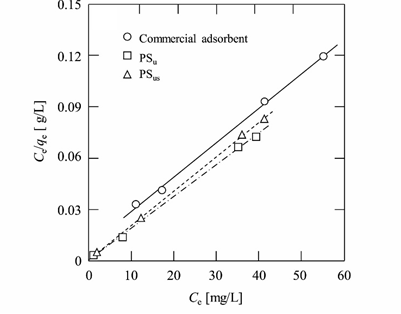 圖7 PSu、PSus和商用吸附劑對Pb2+的Langmuir吸附等溫線(吸附劑的濃度為60 mg·L-1,Pb2+的初始濃度為0.1~0.6 mmol·L-1,實(shí)驗(yàn)溫度為25℃)(來自原文)