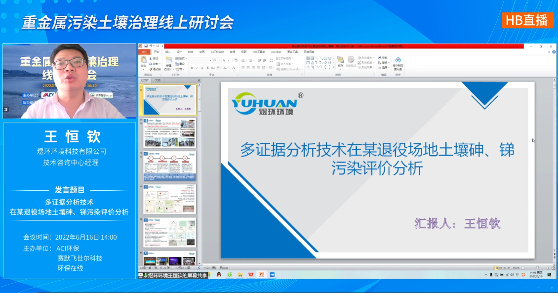 煜環(huán)環(huán)境科技有限公司是一家專注于土壤、地下水污染防治工程和環(huán)保技術(shù)服務(wù)咨詢的專業(yè)公司。研討會上,煜環(huán)環(huán)境科技有限公司技術(shù)咨詢中心經(jīng)理王恒欽作了題為“多證據(jù)分析技術(shù)在某退役場地土壤砷、銻污染評價分析”的匯報。王經(jīng)理介紹了此退役場地項(xiàng)目背景并進(jìn)行了產(chǎn)排污分析。他認(rèn)為,確定是否為背景原因污染意義重大,場地存在普遍超標(biāo)現(xiàn)象且大部分未兜底,對后續(xù)詳調(diào)布點(diǎn)采樣深度、采樣密度意義重大;人為污染所致還是場地的天然高背景所致,關(guān)系修復(fù)方式、污染責(zé)任等問題;對于未來變更土地性質(zhì),維護(hù)社會穩(wěn)定有很大現(xiàn)實(shí)意義。