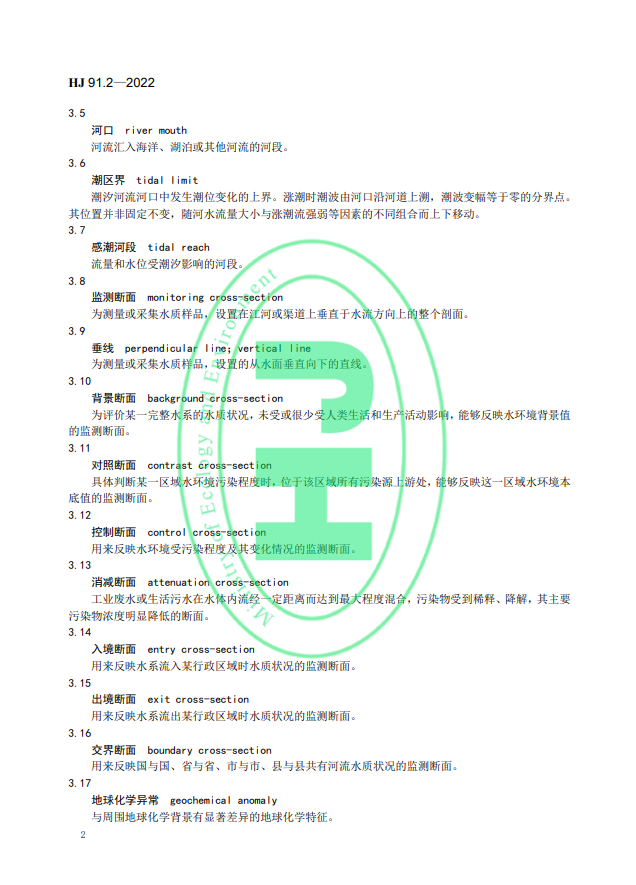 標(biāo)準(zhǔn)號:HJ 91.2—2022部分代替 HJ/T 91—2002