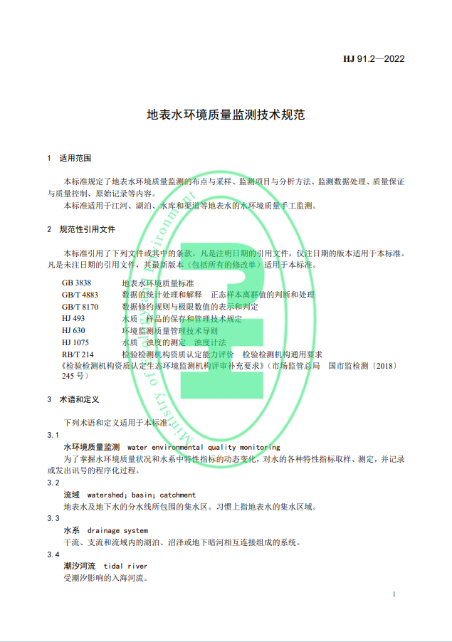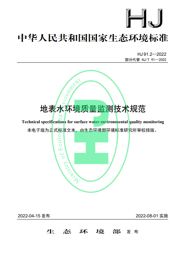 近日,生態(tài)環(huán)境部發(fā)布了《地表水環(huán)境質(zhì)量監(jiān)測技術(shù)規(guī)范(HJ 91.2—2022部分代替 HJ/T 91—2002)》,此標(biāo)準(zhǔn)將于2022年8月1日起實施。全文如下: