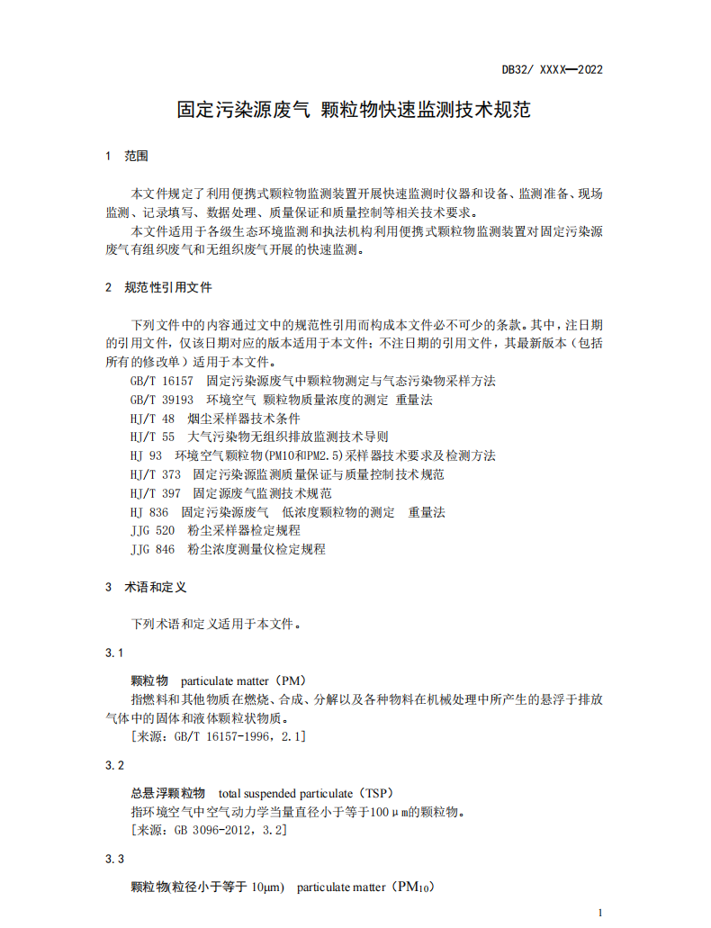 為貫徹《中華人民共和國(guó)環(huán)境保護(hù)法》《中華人民共和國(guó)大氣污染防治法》《江蘇省大氣污染防治條例》等法律法規(guī),進(jìn)一步規(guī)范江蘇省顆粒物快速監(jiān)測(cè)技術(shù)要求,提升大氣污染管控成效,江蘇省生態(tài)環(huán)境廳組織起草了江蘇省地方環(huán)境保護(hù)標(biāo)準(zhǔn)《固定污染源廢氣 顆粒物快速監(jiān)測(cè)技術(shù)規(guī)范(征求意見(jiàn)稿)》,并于近日向相關(guān)單位征求意見(jiàn)。