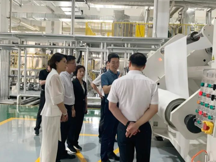 竺主席及徐主任一行實(shí)地參觀了浙江易膜新材料科技有限公司廠區(qū)和生產(chǎn)現(xiàn)場,深入了解建設(shè)情況和生產(chǎn)經(jīng)營情況,現(xiàn)場參觀了數(shù)字化制膜線和卷膜線,以及“領(lǐng)雁”重點(diǎn)研發(fā)攻關(guān)項(xiàng)目的海水淡化膜新產(chǎn)線,并對該項(xiàng)目一期工作順利投產(chǎn)給予充分肯定。