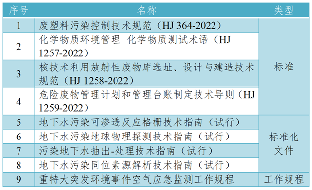 生態(tài)環(huán)境部發(fā)布4項(xiàng)國家生態(tài)環(huán)境標(biāo)準(zhǔn)、4項(xiàng)標(biāo)準(zhǔn)化文件和1項(xiàng)工作規(guī)程,具體見下表。
