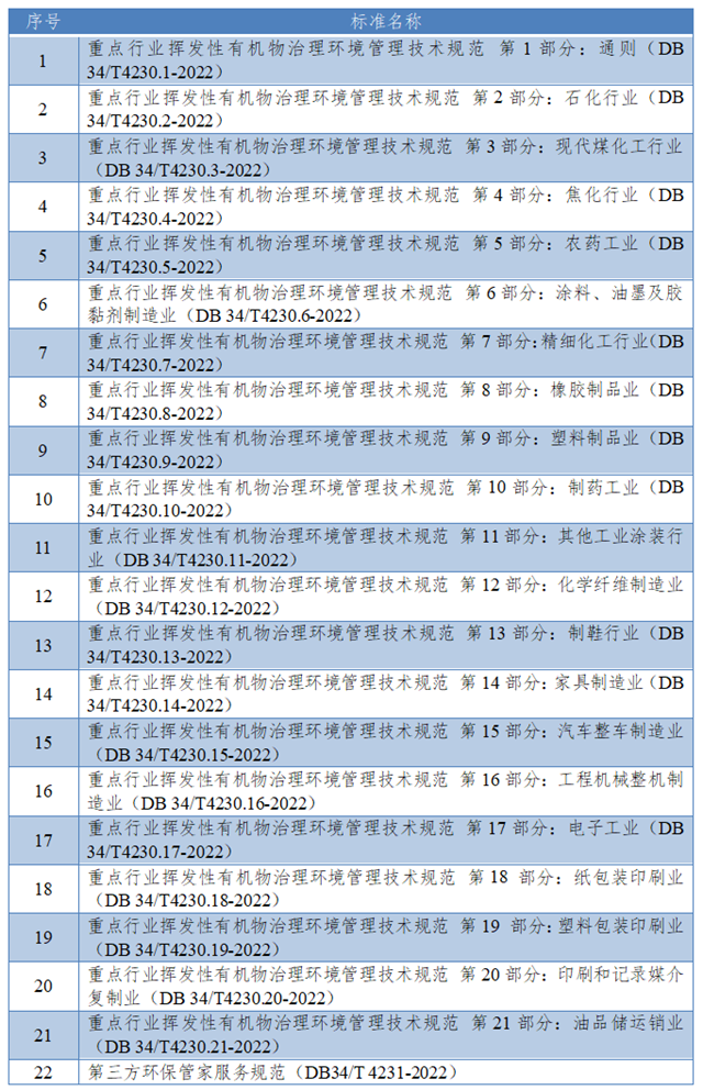 安徽省市場(chǎng)監(jiān)督管理局對(duì)《玻璃工業(yè)大氣污染物排放標(biāo)準(zhǔn)》《廢線路板綜合利用污染控制技術(shù)規(guī)范》《水資源論證區(qū)域評(píng)估技術(shù)導(dǎo)則》等3項(xiàng)地方標(biāo)準(zhǔn)公開征求意見;并發(fā)布22項(xiàng)生態(tài)環(huán)境標(biāo)準(zhǔn),具體見下表。