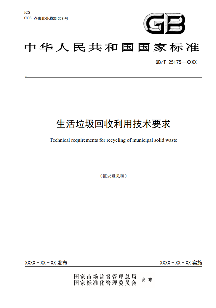 《生活垃圾回收利用技術(shù)要求》(征求意見稿)