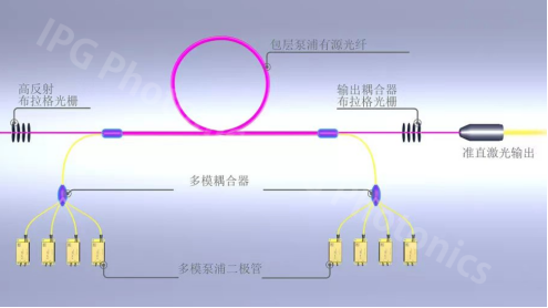 據(jù)IPG官方披露,能夠?qū)崿F(xiàn)如此高的電光轉(zhuǎn)化效率,來(lái)源于其創(chuàng)新技術(shù)——包層側(cè)泵浦技術(shù)和分布式單發(fā)射芯結(jié)二極管泵浦結(jié)構(gòu)。