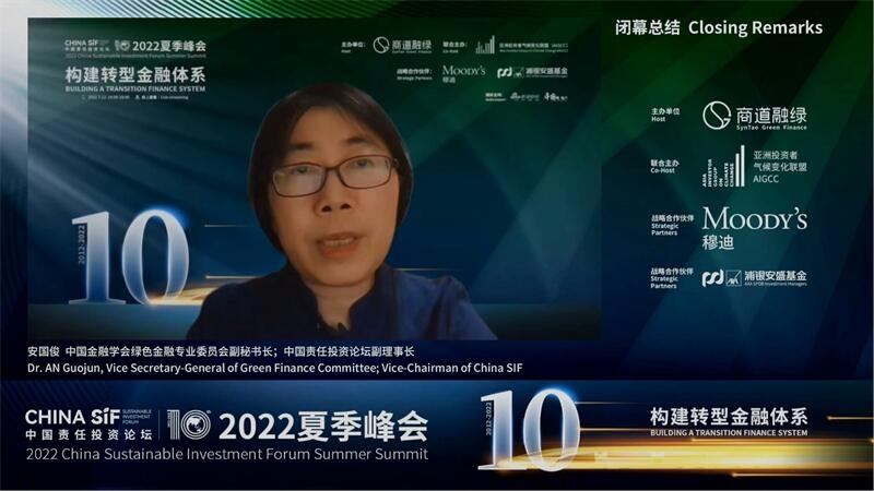 最后,中國金融學(xué)會綠色金融專業(yè)委員會副秘書長、China SIF副理事長安國俊博士做了總結(jié)發(fā)言。她指出,要充分發(fā)揮綠色金融和轉(zhuǎn)型金融的作用,首先要加強投資、金融、財稅等工具創(chuàng)新,激勵社會資本投入綠色低碳產(chǎn)業(yè)及轉(zhuǎn)型技術(shù)領(lǐng)域;完善綠色金融與綠色財政、產(chǎn)業(yè)政策協(xié)調(diào)發(fā)展的“1+N”政策體系,推進(jìn)綠色金融、轉(zhuǎn)型金融、可持續(xù)金融、氣候投融資、影響力協(xié)同發(fā)展。引導(dǎo)綠色基金ESG投資、資本向善的趨勢和體系的完善。同時也要逐步完善與轉(zhuǎn)型金融相關(guān)的行業(yè)標(biāo)準(zhǔn)、風(fēng)險定價機制等“基礎(chǔ)設(shè)施”框架的搭建,培育綠色基金、碳中和基金等綠色投資者,將資管產(chǎn)品創(chuàng)新與社會責(zé)任承擔(dān)有效協(xié)同,為雙碳目標(biāo)構(gòu)建我國綠色金融與轉(zhuǎn)型金融協(xié)同發(fā)展的體系。