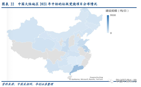 市場逐步向中西部和縣級下沉,小規(guī)模項(xiàng)目占比提升。2021年新增垃圾項(xiàng)目規(guī)模大于1000噸/日以上的總計(jì)15個,僅占五分之一;項(xiàng)目建設(shè)規(guī)模處于300~800噸/日的數(shù)量居多,共計(jì)50個。2021年,河北省成為釋放項(xiàng)目最多的省份(13個),廣東?。?0個)、湖南?。?個)、湖北?。?個)和廣西?。?個)分居二三四位。