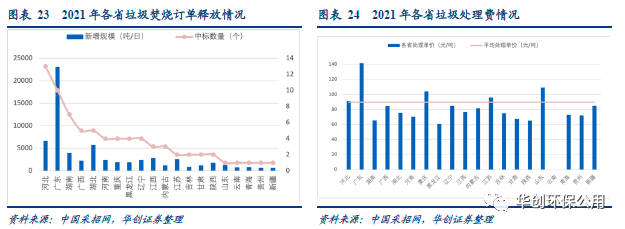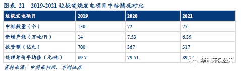 垃圾焚燒新訂單釋放速度減緩、處理費(fèi)價格提升。2021年垃圾焚燒新增體量進(jìn)一步下降,全年中標(biāo)項(xiàng)目總處理規(guī)模達(dá)6.35萬噸/日,同比2020年下降15.67%。與此同時,2021年平均中標(biāo)處理單價為89.63元/噸,同比2020 年增長12.73%。近三年以來中標(biāo)價一直維持快速上升態(tài)勢,疊加政策推動,我們認(rèn)為未來很可能按照“產(chǎn)生者付費(fèi)”原則,實(shí)施居民處理費(fèi),健全收費(fèi)機(jī)制,垃圾處理費(fèi)單價有望進(jìn)一步提升,降低對補(bǔ)貼依賴程度。