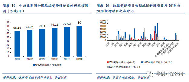 垃圾焚燒設(shè)施日處理規(guī)模超預(yù)期。根據(jù)2020城鄉(xiāng)統(tǒng)計(jì)年鑒的數(shù)據(jù),截至2020年底,我國垃圾焚燒設(shè)施的日處理規(guī)模(城鎮(zhèn)+縣城)合計(jì)已達(dá)到66.19萬噸/日,超額完成了十三五規(guī)劃58萬噸/日的目標(biāo)。
