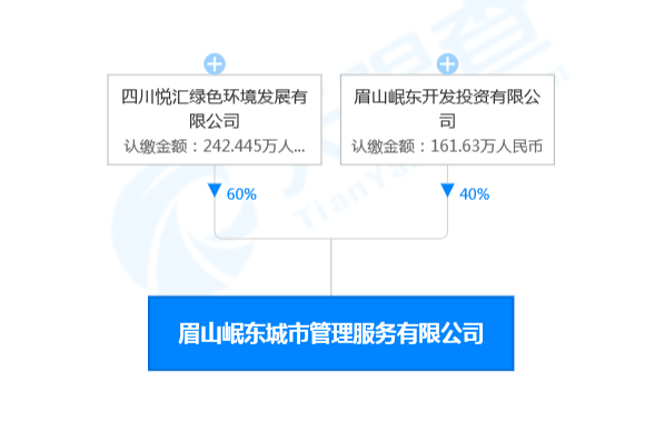中標(biāo)供應(yīng)商眉山岷東城市管理服務(wù)有限公司為“混合所有制企業(yè)”,成立于2021年8月,注冊(cè)資本404.075萬元,由眉山發(fā)展控股集團(tuán)全資子公司眉山岷東開發(fā)投資有限公司(國有資本)與四川悅匯綠色環(huán)境發(fā)展有限公司(民營資本)合資組建,其中“民營資本”持股60%。
