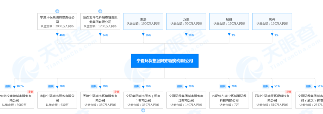 中標(biāo)供應(yīng)商寧夏環(huán)保集團(tuán)城市服務(wù)有限公司公司為“混合所有制企業(yè)”,成立于2018年9月,注冊(cè)資本5000萬元,由寧夏環(huán)保集團(tuán)有限責(zé)任公司(國有資本)與陜西北斗電科城市管理服務(wù)集團(tuán)有限公司及自然人股東史浩、萬里、楊峰、周偉(民營資本)合資組建,其中“民營資本”持股60%。