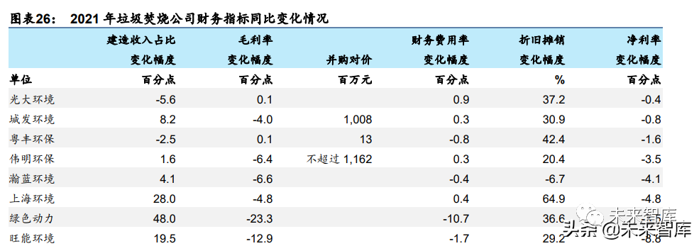 財(cái)務(wù)費(fèi)用和折舊攤銷影響下,產(chǎn)能增長有望穩(wěn)定盈利水平。2021 年偉明環(huán)保和城發(fā)環(huán)境均 實(shí)施了較大規(guī)模的并購,并購交易對價(jià)分別為不超過 11.62/10.08 億元,其財(cái)務(wù)費(fèi)用率同比 均有小幅提升,我們認(rèn)為,并購在短期會帶來財(cái)務(wù)費(fèi)用增長,但投運(yùn)產(chǎn)能的不斷增加將提 供穩(wěn)健現(xiàn)金流,改善公司財(cái)務(wù)結(jié)構(gòu),有望消除財(cái)務(wù)費(fèi)用增加的短期影響。綠色動(dòng)力由于首 次確認(rèn)建造收入和固廢業(yè)務(wù)增長,2021 年?duì)I業(yè)收入同比+122%,因此財(cái)務(wù)費(fèi)用率下降 10.7pp。新增投運(yùn)產(chǎn)能帶來折舊攤銷上漲,項(xiàng)目投運(yùn)初期產(chǎn)能利用率較低,盈利能力相對 較低,我們認(rèn)為,投運(yùn)項(xiàng)目產(chǎn)能度過爬坡期之后,盈利能力可達(dá)到穩(wěn)定狀態(tài)。