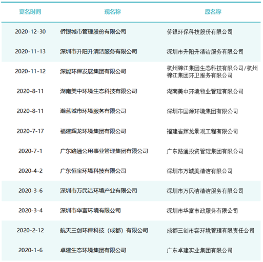 作為玉禾田[300815]最主要的環(huán)衛(wèi)項目投標主體,玉禾田物業(yè)清潔公司在名稱上用“智慧城市運營”替換“物業(yè)清潔”,則是希望轉(zhuǎn)型邁向智慧城市運營商之路。司南君在對近八年的更名規(guī)律進行總結與梳理發(fā)現(xiàn),環(huán)衛(wèi)企業(yè)“更名潮”大概可以分為三個階段。第一波更名潮從2015-2018年。第一波更名潮追求專業(yè)化發(fā)展道路,這個時期的更名熱詞是“環(huán)境服務”、“環(huán)境科技”、”環(huán)保產(chǎn)業(yè)“、“環(huán)保技術”,一大批清潔公司、保潔公司、環(huán)衛(wèi)公司、物業(yè)公司更名為“環(huán)境服務公司”、“環(huán)境科技公司”、”環(huán)保技術公司“。第二波更名潮從2019年到2021年。第二波更名潮集體轉(zhuǎn)向城市綜合服務方向。這一時期的更名熱點是“城市管理”、“城市服務”、“城市管家”、“智慧城市運營”、“公共事業(yè)管理”等,用這些熱詞替代“環(huán)保技術”、“環(huán)衛(wèi)服務”、“環(huán)境科技”、“環(huán)境服務”等傳統(tǒng)環(huán)衛(wèi)詞匯。進入2022年度,環(huán)衛(wèi)企業(yè)迎來第三波更名潮。今后一定時期,環(huán)衛(wèi)行業(yè)的發(fā)展將面臨多重挑戰(zhàn),環(huán)衛(wèi)企業(yè)更名也將更富多元化,因此企業(yè)更名也必將根據(jù)每家公司對行業(yè)發(fā)展的理解認識及自身戰(zhàn)略定位而各有側(cè)重。2015年到2018年是環(huán)衛(wèi)市場化第一波大發(fā)展時期。這期間,環(huán)衛(wèi)市場化大閘初步敞開,PPP模式引入環(huán)衛(wèi)領域,城鄉(xiāng)環(huán)衛(wèi)一體化模式如火如荼,年化額超千萬元、合同額超億元的環(huán)衛(wèi)大標開始批量出現(xiàn),傳統(tǒng)物業(yè)清潔企業(yè)、非環(huán)衛(wèi)類物業(yè)公司大量涌入環(huán)衛(wèi)行業(yè)。因此,環(huán)衛(wèi)企業(yè)第一波更名潮追求專業(yè)化發(fā)展道路,這個時期的更名熱詞是“環(huán)境服務”、“環(huán)境科技”、”環(huán)保產(chǎn)業(yè)“、“環(huán)保技術”,一大批清潔公司、保潔公司、環(huán)衛(wèi)公司、物業(yè)公司更名為“環(huán)境服務公司”、“環(huán)境科技公司”、”環(huán)保技術公司“。這期間有近40家百強企業(yè)或日后發(fā)展成百強企業(yè)的環(huán)衛(wèi)公司完成了更名,如福建東飛環(huán)境集團有限公司、濱南生態(tài)環(huán)境集團股份有限公司、北京慧豐清軒環(huán)境科技集團有限公司、河北人和環(huán)境科技有限公司、浙江波普環(huán)境服務有限公司、深圳市陽光三環(huán)生態(tài)環(huán)境股份有限公司、深圳世路源環(huán)境有限公司(深兄環(huán)境)、廣東美保環(huán)境技術有限公司、泓欣環(huán)境集團有限公司等。第二波:從“環(huán)衛(wèi)服務”到“城市管家”2019年到2021年是“環(huán)衛(wèi)市場化”高潮向“城市大管家模式”的轉(zhuǎn)型期初期。這期間,環(huán)衛(wèi)市場化從大發(fā)展走向大高潮,城市精細化管理從“理念”走向“實踐”,各路國有物業(yè)公司積極推動城市大管家模式,大批頭部物管企業(yè)通過大并購等方式搶灘環(huán)衛(wèi)及城市服務市場。由此,順應時代大潮,環(huán)衛(wèi)企業(yè)第二波更名潮集體轉(zhuǎn)向城市綜合服務方向。這一時期的更名熱點是“城市管理”、“城市服務”、“城市管家”、“智慧城市運營”、“公共事業(yè)管理”等,用這些熱詞替代“環(huán)保技術”、“環(huán)衛(wèi)服務”、“環(huán)境科技”、“環(huán)境服務”等傳統(tǒng)環(huán)衛(wèi)詞匯。這期間有40余家知名環(huán)衛(wèi)企業(yè)完成了更名,如僑銀城市管理股份有限公司、北控城市環(huán)境服務集團有限公司、深圳玉禾田智慧城市運營集團有限公司、深圳市鑫梓潤智慧城市管家股份有限公司、康潔科技集團有限公司、西安高科城市服務管理有限責任公司、溫州市鹿城區(qū)城市管理服務有限公司、廣東路通公用事業(yè)管理集團有限公司、深圳市金陽盛城市服務集團有限公司。第三波:多重挑戰(zhàn)并存轉(zhuǎn)型期進入2022年度,環(huán)衛(wèi)企業(yè)迎來第三波更名潮。這一時期也將是城市管家模式完成第一輪測試后的大發(fā)展時期。圖表8:2022年度更名“百強企業(yè)”(截止2022年8月份)今后一定時期,環(huán)衛(wèi)行業(yè)的發(fā)展將面臨多重挑戰(zhàn):(一)以電動環(huán)衛(wèi)車、氫能環(huán)衛(wèi)車等為代表的“新能源化”;(二)以智慧環(huán)衛(wèi)與無人操作環(huán)衛(wèi)裝備為代表的“智能化”;(三)以城市大管家為代表的城市管理“精細化”;(四)以智慧市政、智慧城市為代表的“平臺化”;(五)以新型城鎮(zhèn)化和城鄉(xiāng)融合發(fā)展為代表的“全域化”;(六)城鄉(xiāng)生活垃圾分類“常態(tài)化”……這一時期有太多的不確定性,環(huán)衛(wèi)企業(yè)更名也將更富多元化,因此企業(yè)更名也必將根據(jù)每家公司對行業(yè)發(fā)展的理解認識及自身戰(zhàn)略定位而各有側(cè)重。其實,這個特點,從最近更名的“新安潔”和“中環(huán)潔”的新名稱可見一斑?!靶掳矟崱备靶掳矟嵵悄墉h(huán)境技術服務股份有限公司”,從“傳統(tǒng)環(huán)衛(wèi)”向“智能環(huán)境技術服務平臺”轉(zhuǎn)型;“