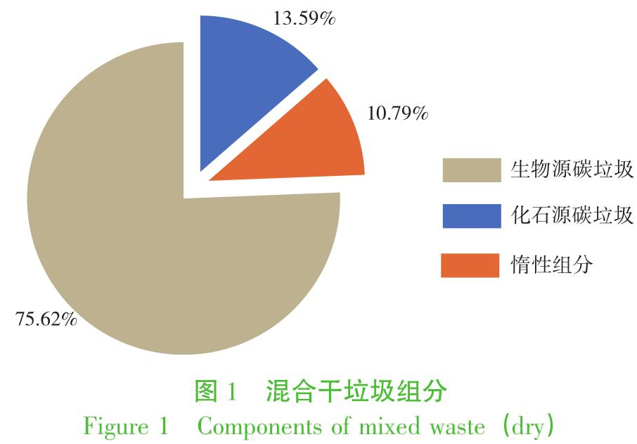 平衡法已被納入ISO 18466:2016,并被聯(lián)合國氣候變化框架公約(United Nations Framework Convention on Climate Change, UNFCCC)更新至CDM方法學(xué)中用于計算垃圾組分中生物源碳和化石源碳的比例。平衡法將混合垃圾分為惰性組分、生物源碳類型垃圾、化石源碳類型垃圾和水等4個組分,通過計算5個質(zhì)量平衡方程和1個能量平衡方程即可在線分析垃圾組分,方法所需數(shù)據(jù)可以從相關(guān)文獻或從垃圾熱解氣化焚燒發(fā)電廠常規(guī)測量的運行數(shù)據(jù)中獲得,無須對垃圾進行額外的采樣分析。平衡法不僅可以用于計算垃圾熱解氣化焚燒廠的總碳排放量,還可以對各組分的排放比例進行分析。