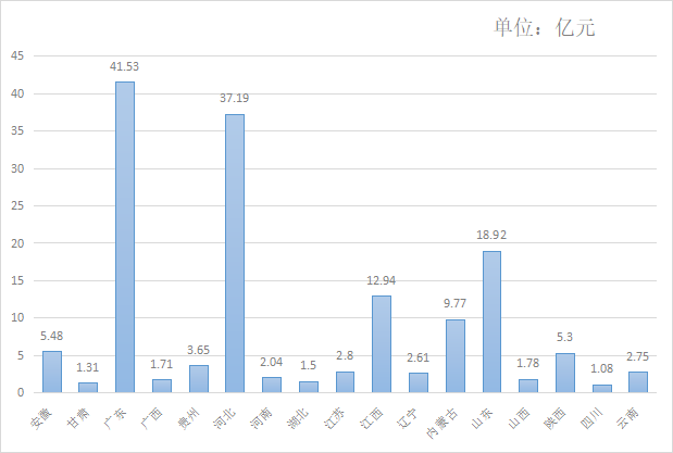 2、山東迎來小高潮,廣東、河北繼續(xù)領(lǐng)跑!8月,安徽、甘肅、廣東、廣西、貴州、河北、河南、湖北、江蘇、江西、遼寧、內(nèi)蒙古、山東、山西、陜西、四川和云南17個(gè)省份都有億級(jí)環(huán)衛(wèi)項(xiàng)目開標(biāo)。項(xiàng)目數(shù)量上,河北(6)、廣東(5)、山東(4)分列前三位;項(xiàng)目金額上,仍是廣東、河北和山東排在前列,金額分別為41.53億元、37.19億元和18.92億元。