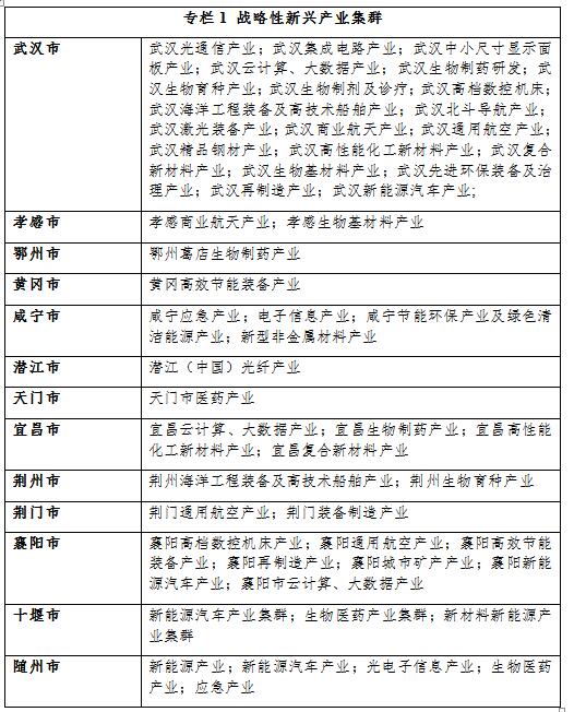 全面推進(jìn)“一主兩副多極”城市帶動(dòng)戰(zhàn)略,發(fā)揮武漢、襄陽、宜昌等中心城市產(chǎn)業(yè)優(yōu)勢和輻射帶動(dòng)作用,以國家級(jí)、省級(jí)開發(fā)區(qū)為主要載體,完善區(qū)內(nèi)和區(qū)外的產(chǎn)業(yè)鏈,建設(shè)世界級(jí)汽車、電子信息、工程設(shè)計(jì)施工產(chǎn)業(yè)集群,打造主導(dǎo)產(chǎn)業(yè)特色突出、優(yōu)勢明顯的長江現(xiàn)代產(chǎn)業(yè)集聚帶。
