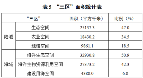 對海洋限制開發(fā)區(qū)域,相應(yīng)陸域禁止開展對海洋生態(tài)有較大影響的開發(fā)活動(dòng)。海洋限制開發(fā)區(qū)域包括海洋漁業(yè)保障區(qū)和重點(diǎn)海洋生態(tài)功能區(qū)。限制陸域開發(fā)利用活動(dòng),持續(xù)推進(jìn)陸域污染防治,實(shí)施污染物達(dá)標(biāo)入海,保護(hù)海洋生態(tài)環(huán)境。為保持海陸主體功能銜接一致,調(diào)整相接陸域生態(tài)和生活空間,涉及面積5941平方千米。