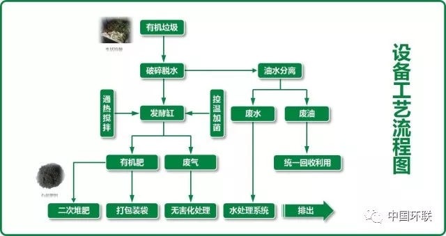 工藝流程為農(nóng)村生活垃圾經(jīng)過(guò)分類收集后,經(jīng)過(guò)人工分選,破碎,脫水后進(jìn)入發(fā)酵箱進(jìn)行高溫快速好氧堆肥,生成有機(jī)肥。