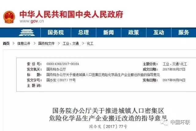 9月4日國務(wù)院辦公廳印發(fā)了《關(guān)于推進城鎮(zhèn)人口密集區(qū)危險化學品生產(chǎn)企業(yè)搬遷改造的指導意見》,《指導意見》明確提出了?;菲髽I(yè)搬遷改造目標:到2025年,城鎮(zhèn)人口密集區(qū)現(xiàn)有不符合安全和衛(wèi)生防護距離要求的?;菲髽I(yè)就地改造達標或搬遷進入規(guī)范化工園區(qū)或關(guān)閉退出,企業(yè)安全和環(huán)境風險大幅降低。其中:中小型企業(yè)和存在重大風險隱患的大型企業(yè)2018年前全部啟動搬遷改造,2020年底前完成;其他大型企業(yè)和特大型企業(yè)2020年前全部啟動搬遷改造,2025年底前完成。