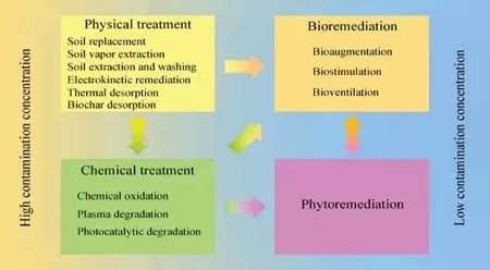 物理修復(fù)方法是利用物理原理和特定工程技術(shù),將土壤中的污染物移除或者轉(zhuǎn)化為無害形態(tài)。其主 要包括土壤置換、氣相抽提、萃取洗脫、電動(dòng)修復(fù)、熱脫附和生物炭吸附等。