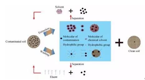 4.熱脫附法:是利用升高溫度來增加污染物在空氣中的分壓,從而達(dá)到將污染物分子從土壤顆粒上分離的目的。熱脫附技術(shù)主要應(yīng)用于高濃度揮發(fā)性或半揮發(fā)性有機(jī)物污染土壤的修復(fù)。有機(jī)污染物在土壤顆粒上的熱脫附包括3 個(gè)階段:①污染物在土壤孔隙內(nèi)的汽化過程;②污染物氣體分子在土壤顆粒內(nèi)部的內(nèi)擴(kuò)散過程;③污染物分子從土壤表面向大氣環(huán)境的表面擴(kuò)散過程。