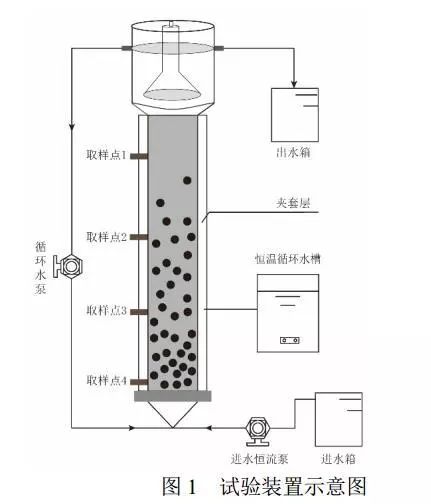 試驗采用小試規(guī)模厭氧顆粒污泥膨脹床反應(yīng)器(expanded granular sludge bed, EGSB),由有機玻璃制作,有效容積為0.8 L,外覆錫紙以隔絕光的影響。反應(yīng)器運行溫度通過恒溫循環(huán)水槽維持在35 ℃,進水pH值用0.1 mmol/L鹽酸調(diào)節(jié)為6.6~6.8,以保證Fe(Ⅲ)的溶解;本試驗采用連續(xù)流,水力停留時間(HRT)為24 h,試驗裝置如圖1所示。