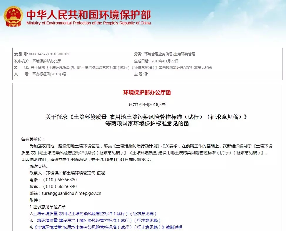 環(huán)保部辦公廳近日發(fā)布關(guān)于征求《土壤環(huán)境質(zhì)量 農(nóng)用地土壤污染風(fēng)險(xiǎn)管控標(biāo)準(zhǔn)(試行)(征求意見稿)》等兩項(xiàng)國家環(huán)境保護(hù)標(biāo)準(zhǔn)意見的函