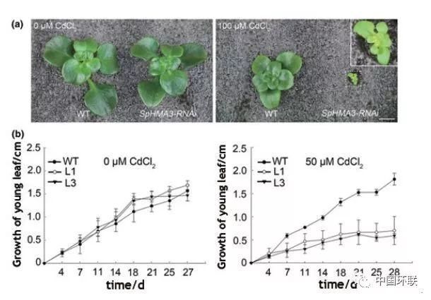 利用超積累植物修復(fù)重金屬污染土壤一直是研究學者們關(guān)注的焦點。區(qū)別于普通植物,超積累植物地上部可富集高濃度的重金屬。其可能作用機制為:超積累植物的根際對土壤重金屬活化效應(yīng);超積累植物對重金屬具有快速的吸收轉(zhuǎn)運體系;超積累植物對重金屬具有強的解毒儲存能力。浙江大學Hou等對比研究重金屬超積累型和非超積累型植物的根際特征,發(fā)現(xiàn)與非超積累型植物相比,超積累型植物根際具有更為龐大的根系,土壤pH值較低,重金屬有效性高;根際土壤重金屬有效性與超積累植物特異的細菌群落具有顯著相關(guān)性,微生物群落功能分析(PICRUSt)超積累植物根際細菌豐度相對較高,其相應(yīng)的功能與膜運輸和氨基酸代謝相關(guān)。該研究揭示了超積累植物根際特征,尤其是特異的根際細菌群落組成對超積累植物吸收重金屬的作用。除超積累植物特殊的根際效應(yīng)外,其植物本身對重金屬吸收和存儲能力亦是超積累重金屬主要機制。浙江大學Tian等對超積累型和非積累型東南景天對Cd吸收、分布以及細胞水平上耐性進行研究。Cd在非積累型植物葉和莖中維管束中有少量分布,而超積累植物Cd含量高,且不同組織和時間上差異較大;兩種植物在Cd向葉原生質(zhì)運輸?shù)膭恿W上沒有較大差異,但超積累型在Cd的液泡存儲上更為高效。該研究結(jié)果表明相對于快速運輸至薄壁細胞,Cd的液泡高效存貯是東南景天莖中積累Cd的更為重要的機制。超積累植物對重金屬的積累和解毒機制受控于體內(nèi)特有基因表達。中國科學院植物研究所Liu等對鎘鋅超積累植物伴礦景天Cd耐性基因進行研究,發(fā)現(xiàn)伴礦景天體內(nèi)的ATP酶3基因(SpHMA3)對其Cd在體內(nèi)解毒具有重要作用,酵母中外源SpHMA3表達試驗表明其具有Cd專一運輸活性,對Cd敏感而對Zn不敏感,SpHMA3基因在非超積累型景天中超量表達可增加其對Cd的耐性和積累性,但對Zn無效應(yīng)。該研究結(jié)果證實位于液泡膜上的SpHMA3基因?qū)χ参顲d解毒機制起著重要作用,能保持伴礦景天在Cd污染土壤上正常生長(圖5)。