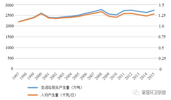 圖2. 芬蘭生活垃圾產(chǎn)生量及人均產(chǎn)生量的變化趨勢(shì)