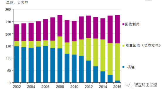 圖10. 2002~2016年間芬蘭的廢物處置方式變化情況