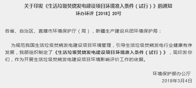 環(huán)保部日前發(fā)布了《生活垃圾焚燒發(fā)電建設項目環(huán)境準入條件(試行)》,該準入條件適用于新建、改建和擴建生活垃圾焚燒發(fā)電項目,對焚燒爐主要技術性能指標、煙氣排放、飛灰處置、環(huán)境監(jiān)測等提出了明確要求。