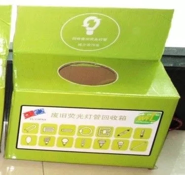 對廢熒光燈管有回收義務(wù),銷售新產(chǎn)品時(shí)可一對一地回收報(bào)廢產(chǎn)品,并及時(shí)送到規(guī)定的授權(quán)處理機(jī)構(gòu)進(jìn)行處理。使用專用的收集箱收集,分類存放于暫存處,并與其他垃圾分類隔離。