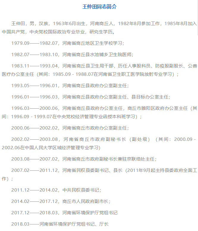 此外,還有一些來(lái)自地方黨委政府的新廳長(zhǎng),陜西省環(huán)保廳廳長(zhǎng)馮振東的上一個(gè)職務(wù)是陜西省延安市委副書(shū)記、政法委書(shū)記;2018 年3 月被任命的河南省環(huán)保廳廳長(zhǎng)王仲田,此前曾任河南省商丘市副市長(zhǎng)。