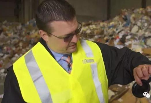 McKay用一個(gè)大耙子從垃圾堆里將不可回收的物品扒出來(lái), 其中包括一個(gè)裝有狗糧的袋子以及一個(gè)印有可回收字樣的黑色塑料咖啡杯蓋, "無(wú)論從外觀、手感還是標(biāo)識(shí)看, 它都是可回收垃圾,然而它不是!"
