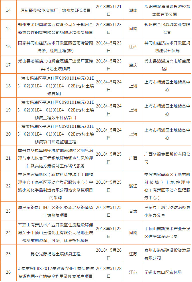 我國土壤修復(fù)市場前景廣闊,很多土壤修復(fù)項目也在如火如荼地進行,5月下旬土壤修復(fù)市場又有哪些項目呢?