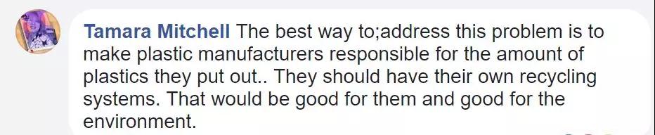 “解決這個問題最好的方式應(yīng)該是讓那些塑料制造商對他們生產(chǎn)的塑料負(fù)責(zé),他們應(yīng)該有自己的回收系統(tǒng),這對他們自己有利的同時也有益于我們的環(huán)境。”