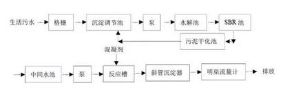 當(dāng)單一的處理方法處理效果不理想時,為了達(dá)到污水排放的標(biāo)準(zhǔn),可以使用多種方法聯(lián)合的方式。最常見的是物理-化學(xué)處理法,其基本工藝如下: