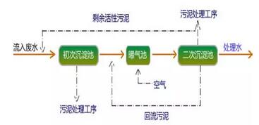 活性污泥工藝是國內(nèi)外城市污水處理工藝的主流。由于其較高的處理效率,運(yùn)行穩(wěn)定可靠,而被大中型污水處理廠廣泛使用。其基本工藝流程圖如下: