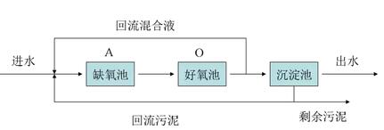 A-O工藝法也叫厭氧好氧工藝法,A是厭氧段,用于脫氮除磷;O是好氧段,用于除水中的有機(jī)物。該工藝的主要缺點(diǎn)有兩個:一是由于沒有獨(dú)立的污泥回流系統(tǒng),從而不能培養(yǎng)出具有獨(dú)特功能的污泥,難降解物質(zhì)的降解率較低;二是若要提高脫氮效率,必須加大內(nèi)循環(huán)比,因而加大運(yùn)行費(fèi)用。此外,內(nèi)循環(huán)液來自曝氣池,含有一定的DO,使A段難以保持理想的缺氧狀態(tài),影響反硝化效果,脫氮率很難達(dá)到90%。