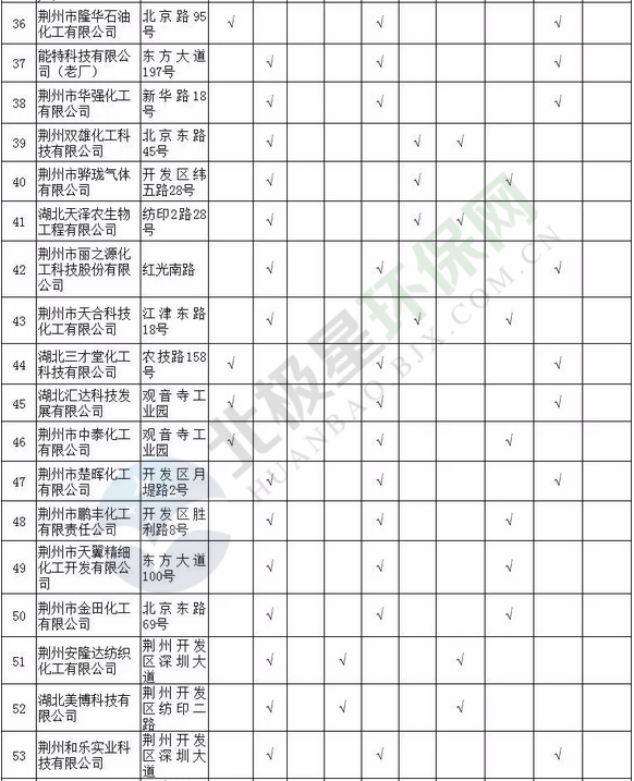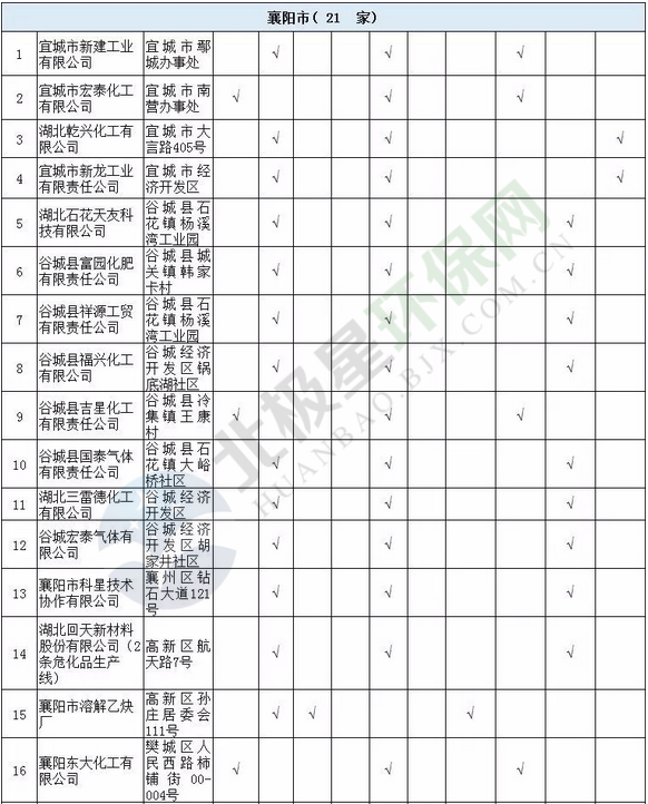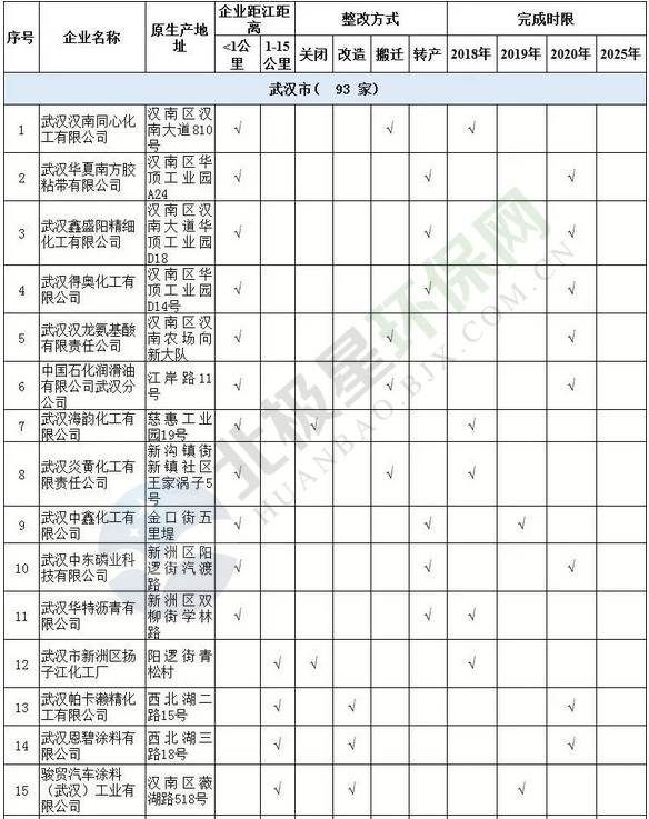 日前湖北省經(jīng)信委發(fā)布了關(guān)于《湖北省沿江化工企業(yè)關(guān)改搬轉(zhuǎn)任務(wù)清單(征求意見稿)》公示,其中涉及湖北省沿江化工企業(yè)總計(jì)497家。公示期為2018年9月30日至10月11日。其中,武漢市( 93家 )、襄陽(yáng)市( 21家 )、宜昌市( 86 家)、十堰市( 21家)、荊州市(81家)、黃石市(16家)、荊門市(56家)、鄂州市(14家)、孝感市(8家)、黃岡市(38家)、咸寧市(8家)、恩施州(4家)、仙桃市(20家)、天門市(9家)、潛江市(22家)。