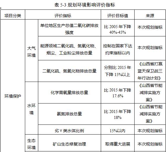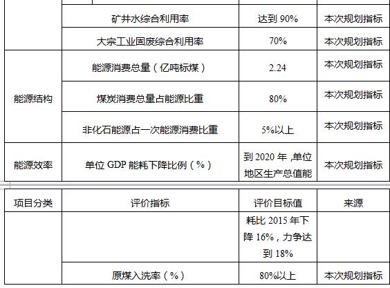 到2020年,單位地區(qū)生產(chǎn)總值二氧化碳排放強(qiáng)度完成國(guó)家下達(dá)指標(biāo);能源領(lǐng)域二氧化硫、氮氧化物、煙塵、工業(yè)粉塵排放總量控制在國(guó)家下達(dá)約束指標(biāo)以內(nèi)。礦井水綜合利用率達(dá)到90%,大宗工業(yè)固廢綜合利用率達(dá)到70%。劣Ⅴ類水體比例在15%以內(nèi)。礦山生態(tài)修復(fù)治理取得重大進(jìn)展。