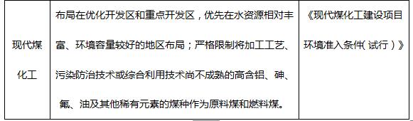 (一)嚴(yán)格執(zhí)行《關(guān)于落實(shí)<水污染防治行動(dòng)計(jì)劃>實(shí)施區(qū)域差別化環(huán)境準(zhǔn)入的指導(dǎo)意見(jiàn)》和《現(xiàn)代煤化工建設(shè)項(xiàng)目環(huán)境準(zhǔn)入條件》的相關(guān)要求,在保護(hù)生態(tài)的前提下,科學(xué)布局煤化工產(chǎn)業(yè)。