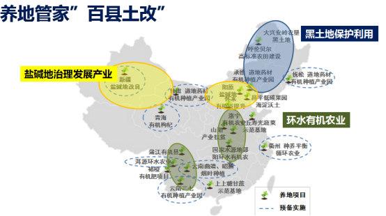 接下來,講一下中關(guān)村百草園的案例。在國際中藥材市場,中國的中藥占有率不到0.2%,日、韓是85%,他們在國際市場的中藥多是在中國種植的,但標(biāo)準(zhǔn)不一樣,關(guān)鍵就是高碳低氮健康土壤的培育。于是,我們在中關(guān)村發(fā)起了一個百草園計劃,成立了有機(jī)道地藥材研究院,用中醫(yī)思想解決中藥問題,其中最主要的就是有機(jī)質(zhì)安全、高效、標(biāo)準(zhǔn)化利用,標(biāo)準(zhǔn)化農(nóng)時管理。我們和北師大北中醫(yī)國家大學(xué)科技園等機(jī)構(gòu)共同成立這個研究院,作為一個平臺,這也是中關(guān)村六姐妹們共同為有機(jī)中藥做的一個平臺,建立100個有機(jī)道地藥材研究基地,它的第一個服務(wù)對象是中關(guān)村的生物制藥企業(yè),我們將在國家貧困縣做100個有機(jī)道地藥材項目,成為藥企自有藥材基地的運營服務(wù)商。