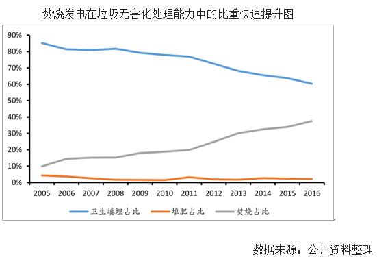 從生活垃圾無(wú)害化處理情況來(lái)看,若考慮無(wú)害化處理率更低的縣鎮(zhèn)及農(nóng)村,則城鎮(zhèn)生活垃圾歷史堆存量的數(shù)字將更為龐大。要緩解當(dāng)前垃圾圍城的壓力,改善城鎮(zhèn)人居生活環(huán)境,加大無(wú)害化處理設(shè)施建設(shè)投入是必然要求,而這也將為垃圾處理市場(chǎng)的發(fā)展帶來(lái)廣闊的空間。