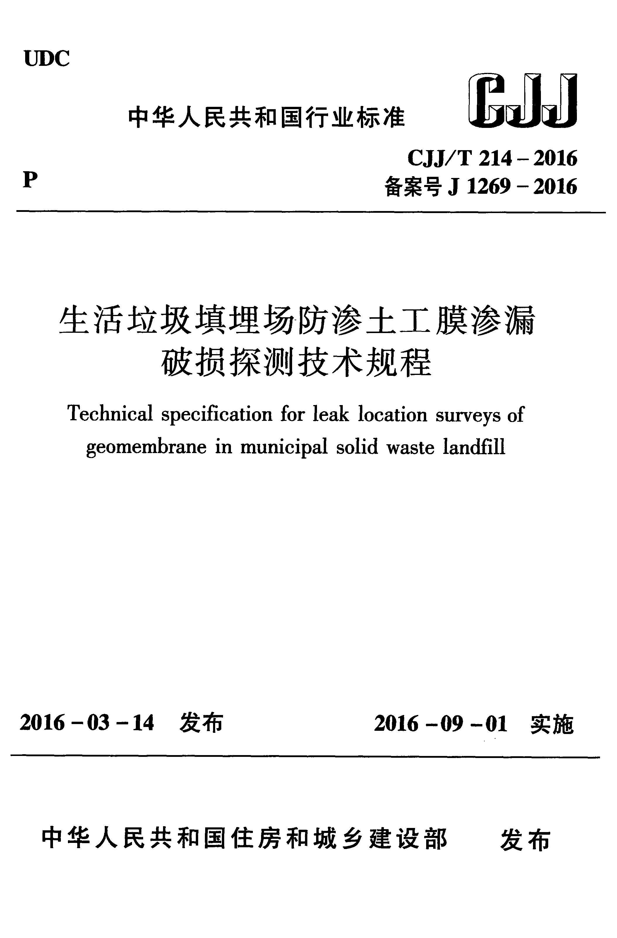 生活垃圾填埋場防滲土工膜滲漏破損探測技術(shù)規(guī)程(CJJ/T 214-2016)