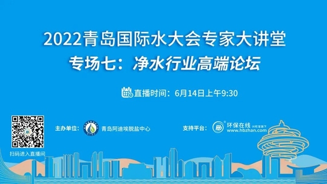 “2022青島國際水大會專家系列大講堂”接力第七場——凈水行業(yè)高端論壇將于6月14日上午登陸環(huán)保在線!緊跟海水淡化、工業(yè)節(jié)水與污水資源化、城鎮(zhèn)水務(wù)、水資源可持續(xù)、水環(huán)境治理、膜材料等議題的熱度,凈水行業(yè)的當下與未來,誠邀業(yè)界同仁共探共論。(點擊圖片,即...