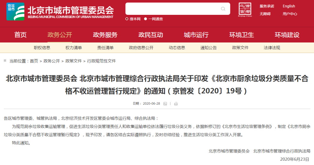 關(guān)注 | 北京市廚余垃圾分類質(zhì)量不合格 不收運(yùn)(附文件解讀)